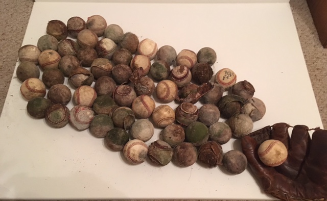 Medium: canvas, old baseballs hit over the fence, 1940s baseball glove